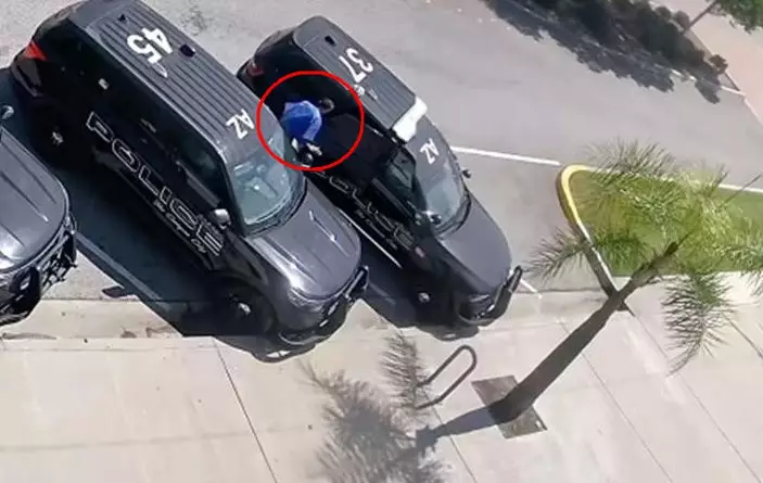 然而,他離開警局後並未返家,監控畫面顯示,他走到一輛停放在分局正前方、沒有上鎖的警車旁,動作流暢地鑽入後座,從此再也沒有下車。