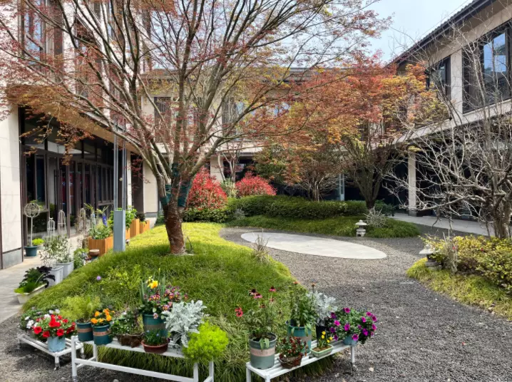 社區庭院種有楓樹及時花,環境幽靜,吸引活力型長者選擇在此度過退休生活。巴士的報記者攝