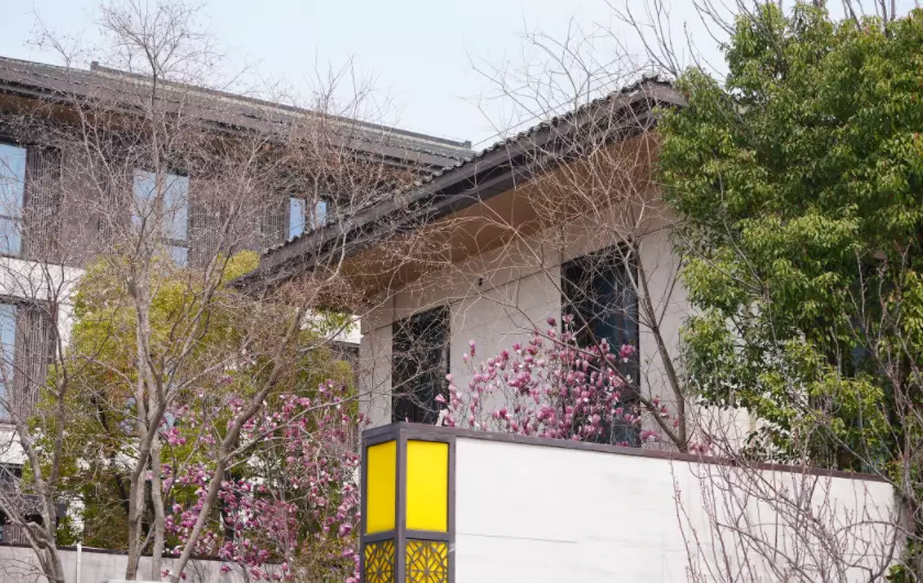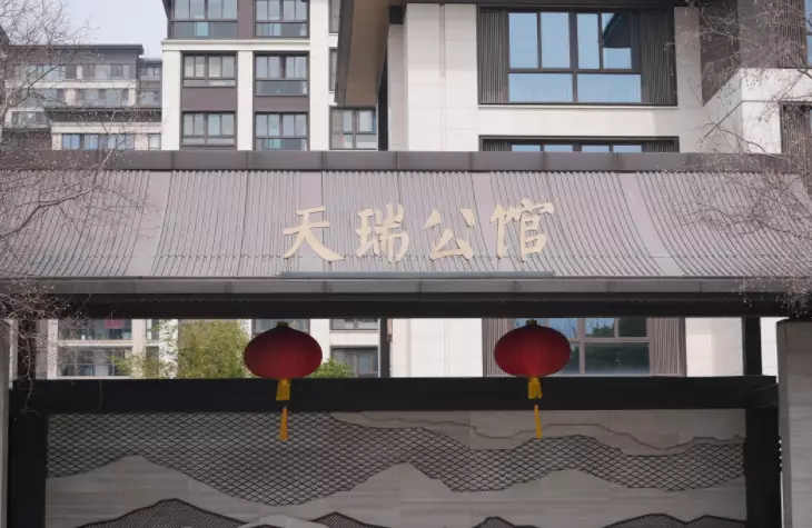 天瑞公館正門掛有燈籠,入口以傳統建築風格呈現,與周邊住宅小區融為一體。巴士的報記者攝