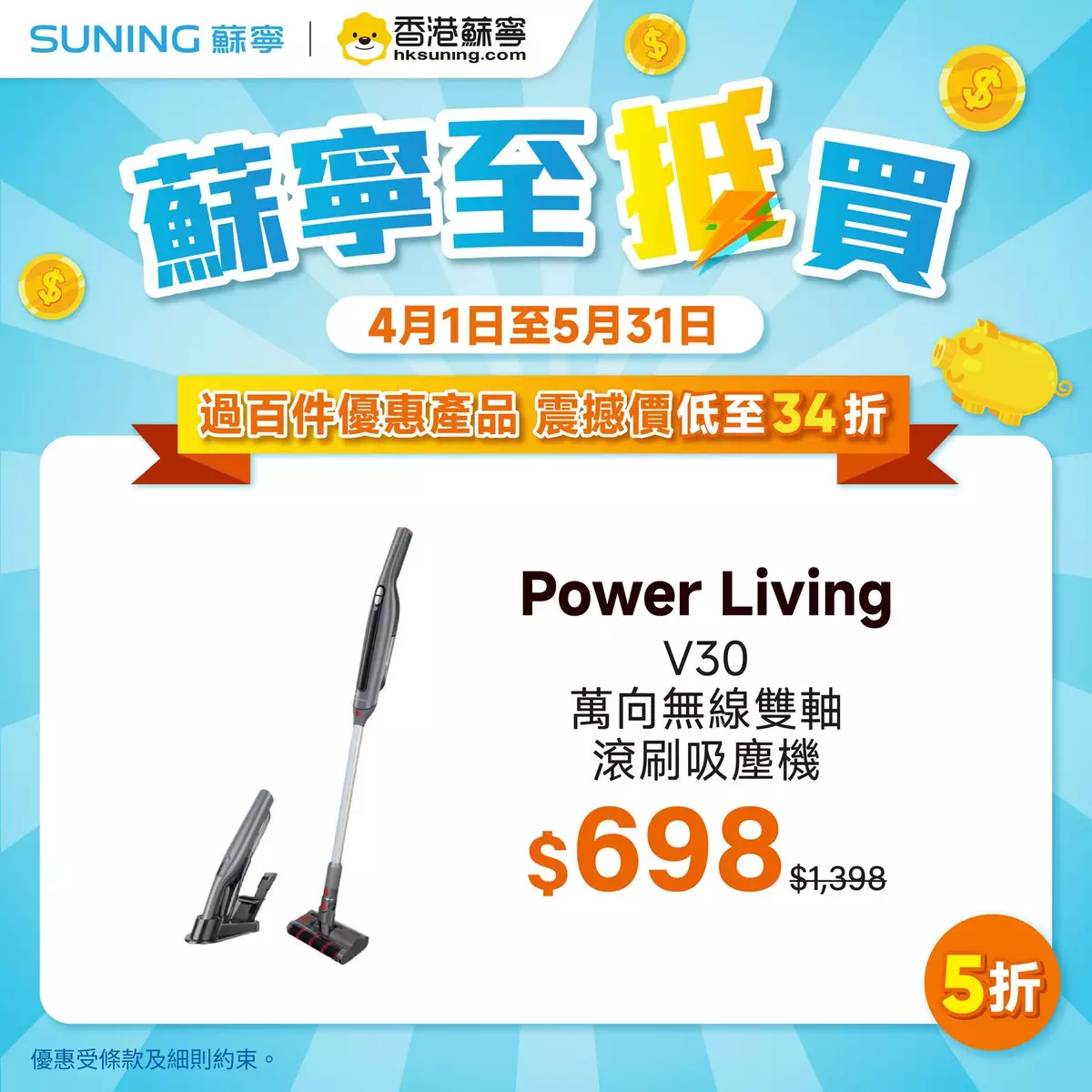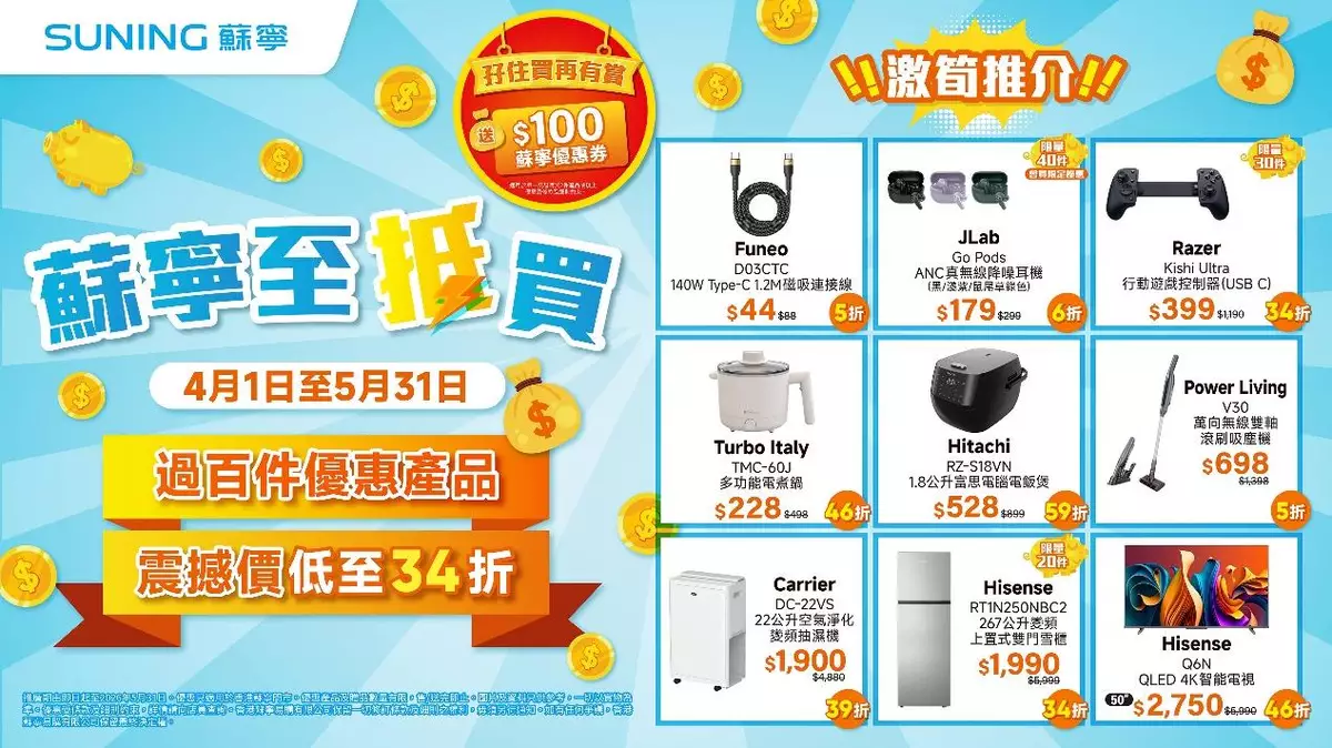 買電器最緊要抵!香港蘇寧《蘇寧至抵買》優惠現正進行中,推出過百件優惠產品,震撼價低至34折,並有一系列5折及6折的至抵買產品。優惠期由即日起至2026年5月31日。