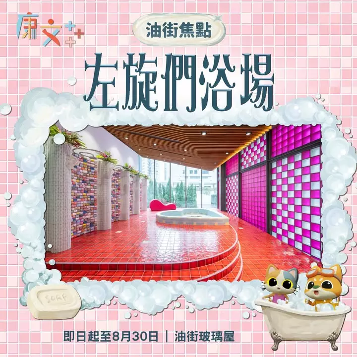 「左旋們浴場」展覽由即日起於北角油街實現展出。館方透過不同媒介的藝術裝置,將浴場文化轉化為思辨空間,市民可免費入場參觀。
