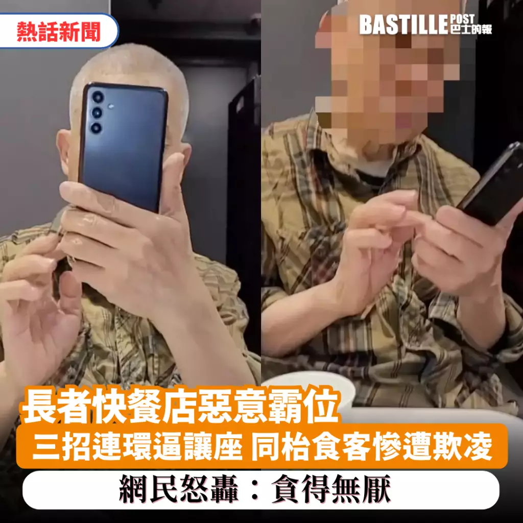事主在帖文中詳細描述事發過程,指當時自己正在快餐店卡座用膳,「有個『伯虎』坐埋嚟,斟咗2杯熱水拎住袋面包坐埋唻」。該長者坐下後,隨即「除鞋拎張紙巾抹鞋」,事主認為對方「咁賤格好明顯係想趕我走」。