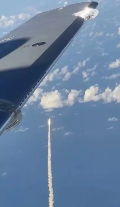 今次升空也意外帶動一段「機艙偶遇發射」的影片在網上瘋傳,有商業航班乘客當時正好途經佛州附近空域,從機艙窗戶拍下火箭升空的一刻。片段可見,獵戶座太空船彷彿就在窗外咫尺之遙,火箭拖著明亮尾焰直衝天際,畫面相當震撼,不少網民看後直呼:「比NASA直播還棒」、「好幸運能親眼目睹」。