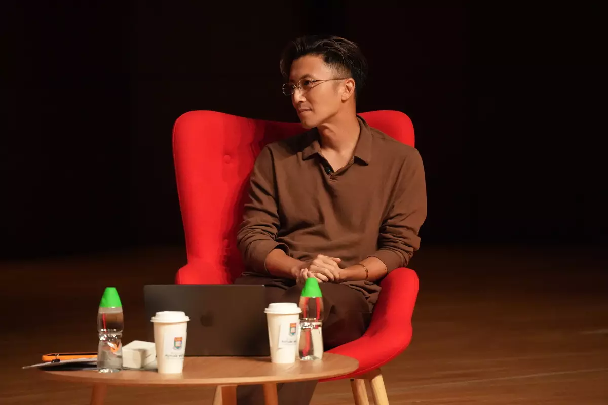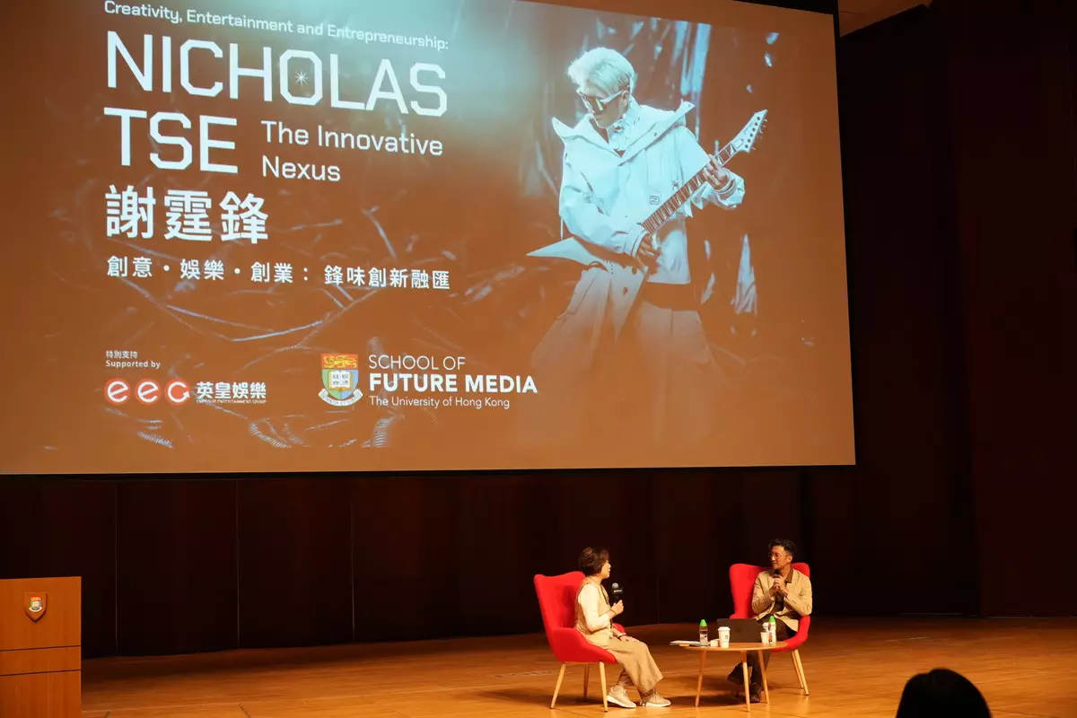 謝霆鋒昨日(4月2日)受香港大學未來媒體學院邀請,出席「創意.娛樂.創業:鋒味創新融匯」主題講座,跟大家探討他橫跨演藝、餐飲、科技、商業等多個領域的歷程及創新思考。講座以對談形式進行,由該學院總監及教授(實務)楊紫燁(Professor Ruby Yang)跟霆鋒對談,後設有問答環節,讓霆鋒答現場同學問題回。
