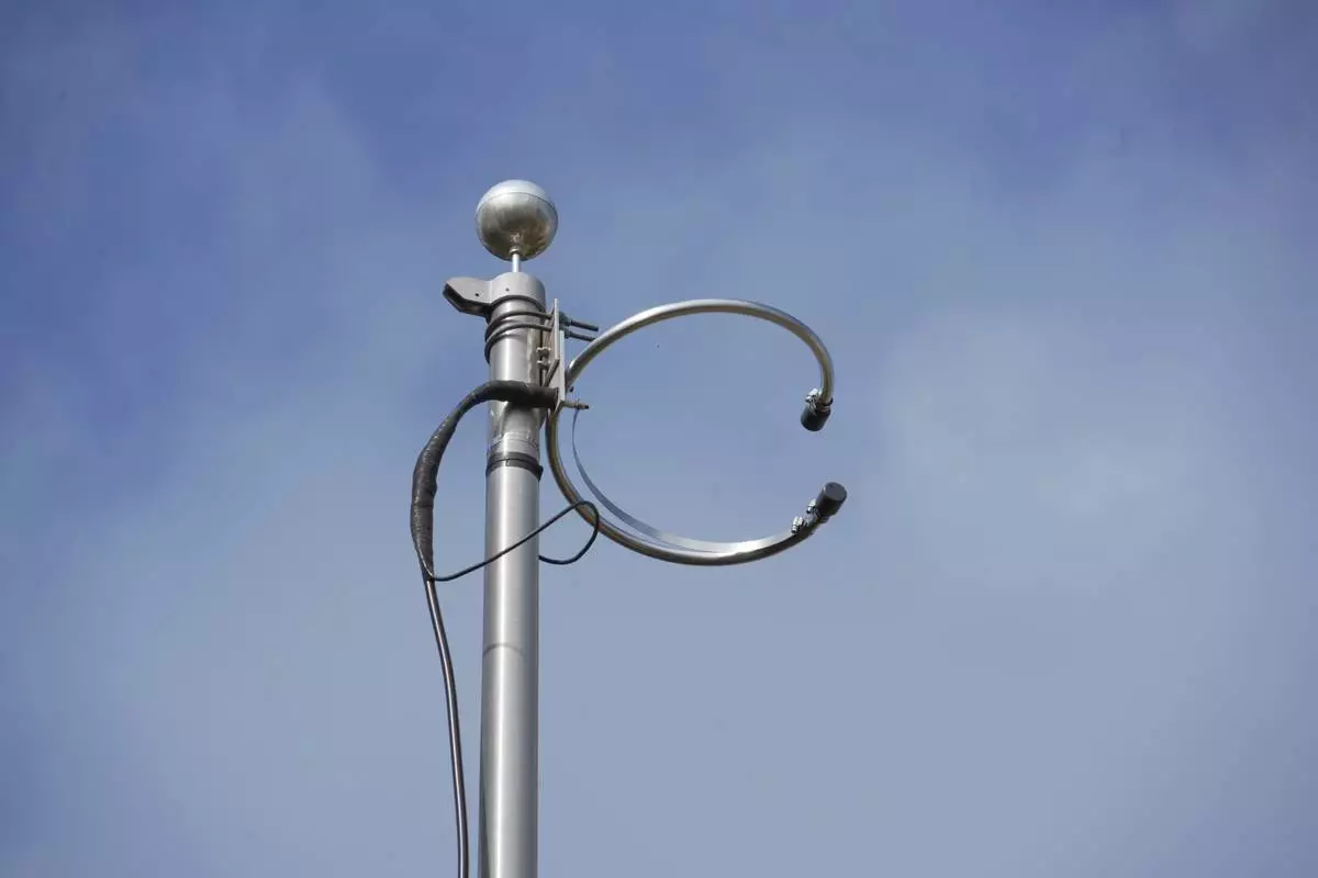 WKRP電台天線於2026年4月2日周四,安裝在D.P. 麥金泰爾位於北卡羅來納州羅利(Raleigh, N.C.)家中後方一根約7.62米高的旗桿頂部。(美聯社圖片/Allen G. Breed) AP圖片