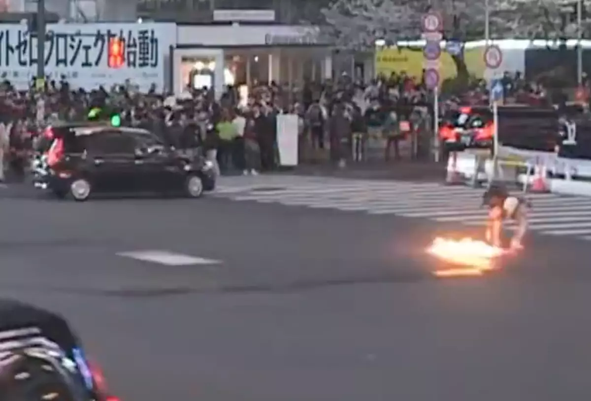 日本東京澀谷著名的十字路口發生縱火事件,一名男子在路中心放下寫着「日本幾乎被控制了」字樣的紙牌後放火,然後離去。種當場被救熄,該名男子事後被捕。