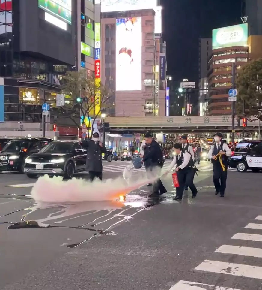綜合日媒報道,事發於當地3日晚上約9點05分,警方接獲119報警電話,指東京都澀谷區道玄坂2號的澀谷十字路口發生「燃油外洩起火」事件。警方將救熄後消防員趕到現場,事件中無人受傷。