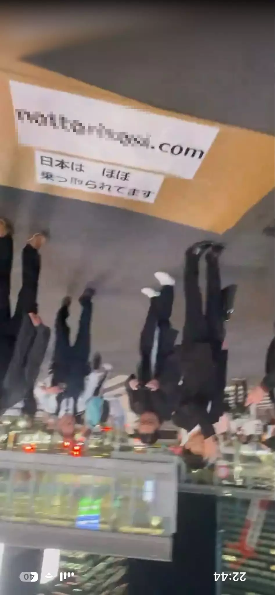 有網民拍到,該名男子放下的紙牌,寫着一個網站地址,並有一句標語,寫着「日本幾乎被控制了」字樣。