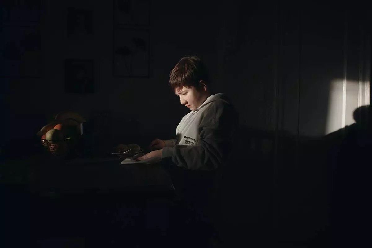周二(2026年3月17日),11歲的古爾哈約·尤爾多舍娃(Gulhayo Yuldosheva)的兒子赫里貝托(Heriberto)在紐約市布朗克斯區一棟公寓大廈一邊吃早餐一邊使用手機,該處租客反映維修問題及蟲害。 (美聯社圖片/安德烈斯·庫達奇) AP圖片