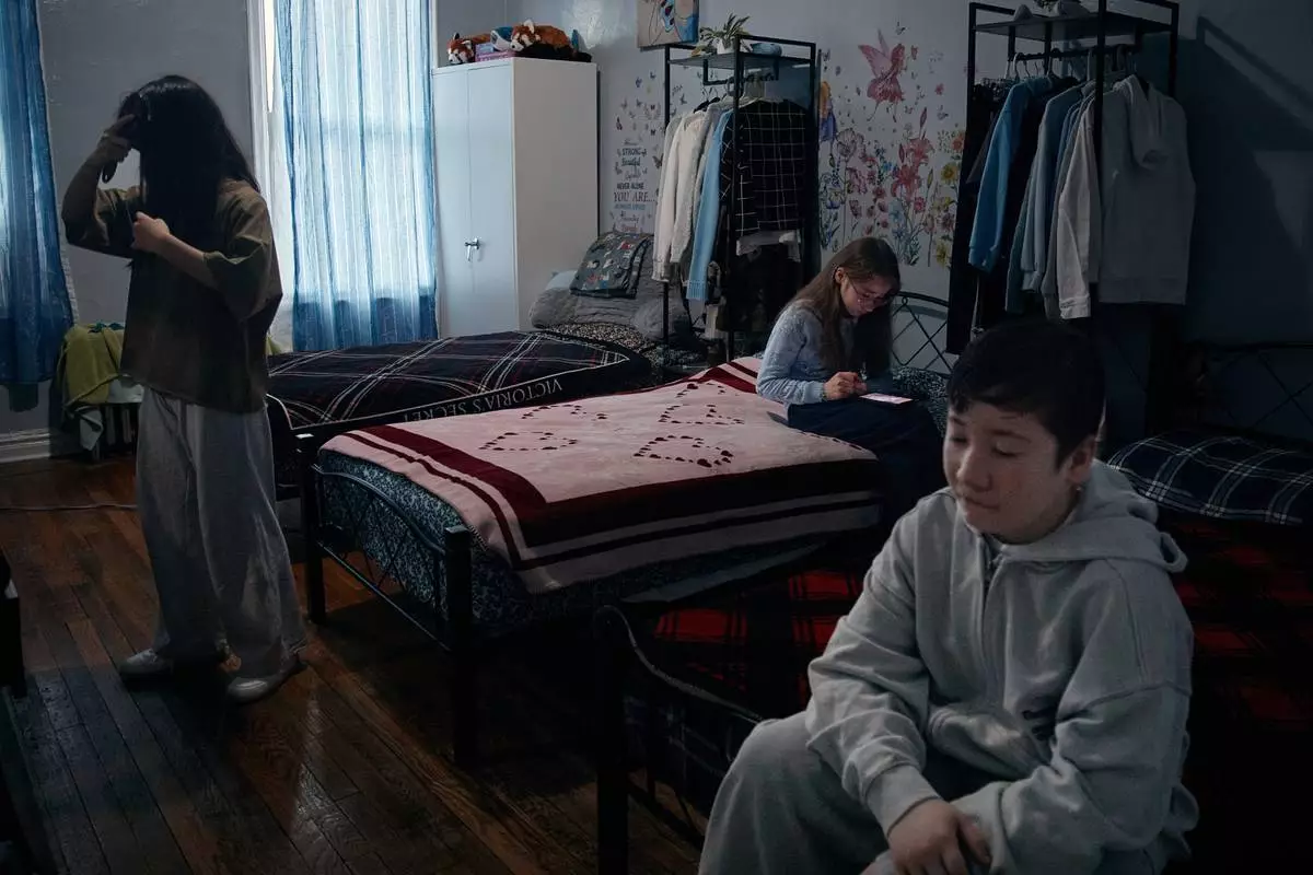 2026年3月17日周二,紐約布朗克斯(Bronx)一幢租客投訴維修問題及蟲害的大廈內,古爾哈約·尤爾多舍娃(Gulhayo Yuldosheva)的孩子們準備上學。(美聯社圖片/Andres Kudacki) AP圖片