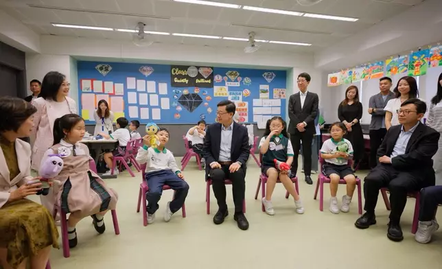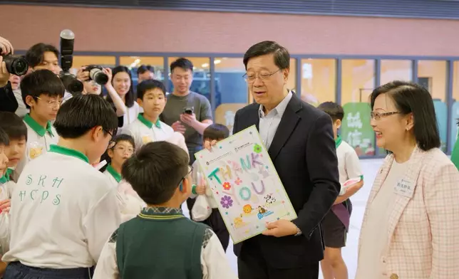 李家超到訪的學校正推行「在校課後託管服務計劃」,視察計劃運作。