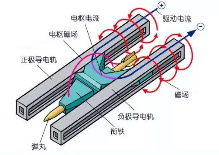 電磁炮作為典型新概念武器,核心原理是利用電磁力而非傳統火藥燃氣推動彈丸加速。具體而言,即通過在軌道間通入強電流,形成強磁場,使導體彈丸在洛倫茲力作用下獲得極高加速度,從而實現超高初速發射。