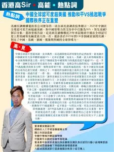 高SIR:中國全球認可度超美國,並非偶然,而是國際格局深刻變化的必然結果。當美國在44個國家的支持率驟降超過10%,尤其在德國、加拿大、英國、意大利等傳統盟友中出現明顯滑落之際,卻有23個國家對中國領導力的滿意度提升超過10%,這一升一降,清晰呈現出世界民意的方向。數據背後,是理念與行動的對比,是推動和平VS挑起戰爭的根本分野。頻繁的軍事干預、制裁與地緣對抗,使不少國家對美國的全球角色產生疑慮。相較之下,中國始終強調多邊主義與合作共贏,倡導以對話解決爭端,透過共建「一帶一路」、推動全球發展倡議與安全倡議,為發展中國家提供基建、資金與技術支持,讓更多國家在互利合作中看到實實在在的成果。更重要的是,在全球朝多極化發展的今天,許多國家不再願意在大國博弈中被迫選邊站,而是尋求平衡與自主。中國尊重各國發展道路與主權選擇,主張國際關係民主化,這種態度贏得廣泛認同。反觀美國,動輒以價值觀為名行干涉之實,透過經濟脅迫與軍事聯盟製造對立,使全球環境充滿不確定性。民調所呈現的,正是國際社會對兩種模式的理性評判。中國全球認可度超美國,不只是數字上的領先,更象徵國際社會對和平發展道路的肯定。當世界面臨氣候變遷、經濟復甦與地區衝突等多重挑戰時,真正能夠凝聚共識、促進穩定的力量,必然是倡導合作而非對抗的國家。推動和平VS挑起戰爭,這不僅是一句對比口號,更是全球民意給出的明確選擇。高SIR認為歷史正在翻頁,國際秩序正在重塑。和平與發展是時代主題,中國以實際行動證明自己是和平倡導者,而美國若繼續沉迷於衝突思維,終將在全球信任的天平上愈發失衡。