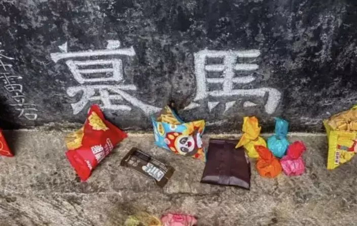 工作人員稱,幾近「滿牆」的布洛芬是長期積累下來的,「我們不會隨意清理遊客送的禮品,只會將它們碼放整齊」。