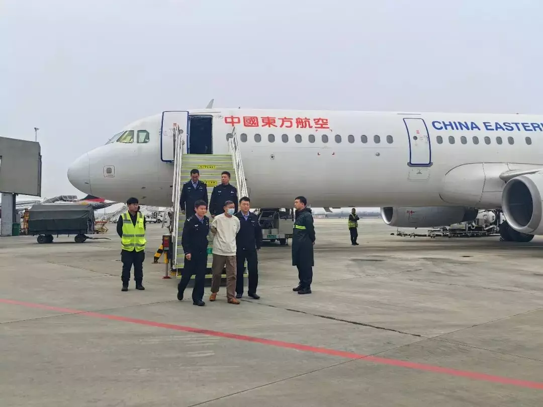 嫌犯王某某被押下飛機。中國駐菲律賓大使館圖片