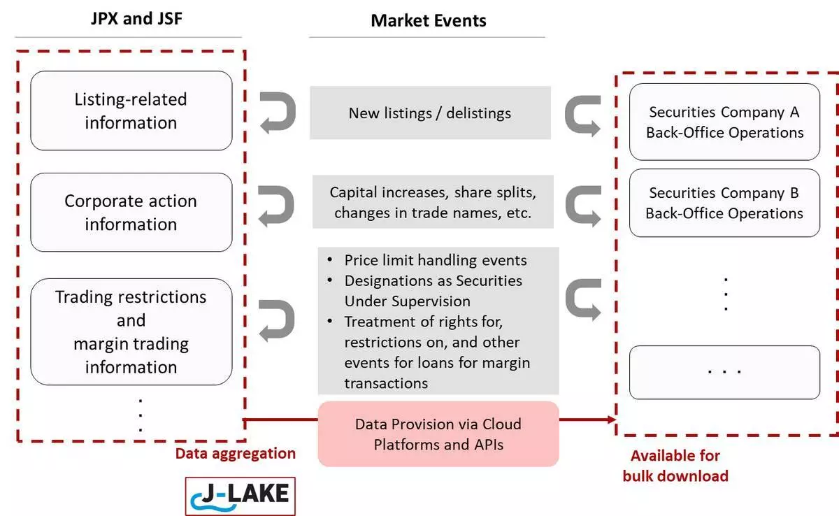 作為此項倡議的一部分,日本交易所集團市場創新及研究公司(JPXI)與日本證券金融公司(JSF)欣然宣布,兩家機構已同意攜手推進關於建立業界共通數據平台的討論。該平台將匯集各類企業及交易資訊,並以有利於自動化處理的格式分發,旨在協助證券公司提升後勤營運的準確性及效率。