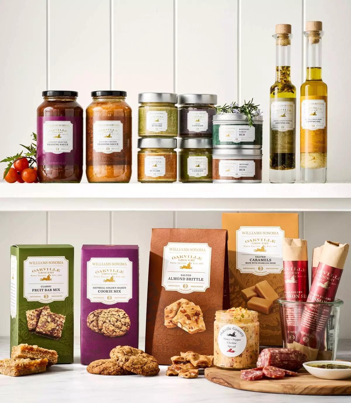 全新的「奧克維爾雜貨店為威廉姆斯索諾瑪」系列,涵蓋一系列美食及廚房必備品,旨在提升日常烹飪體驗,並讓款待賓客變得輕鬆。該系列透過加入赤霞珠、芥末、檸檬、橄欖、茴香、迷迭香、大蒜及大蔥等風味和食材,頌揚納帕谷(Napa Valley)和索諾瑪谷(Sonoma Valley)的特色。從金黃橄欖油、鮮豔的橄欖醬,到慢燉的燉煮醬汁及精心製作的調味品,每款產品均反映出北加州葡萄酒鄉的季節豐饒、手工藝及豐富層次的風味。