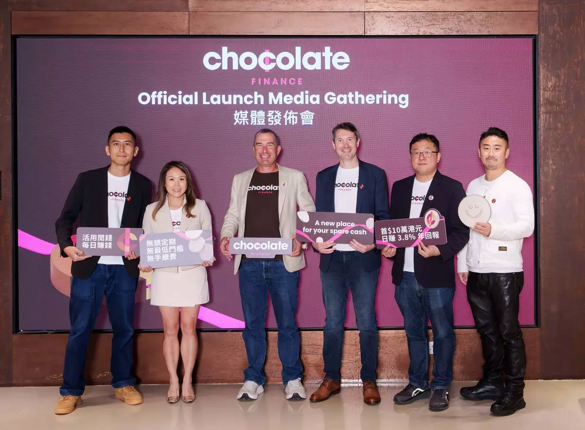 來自新加坡的彈性理財平台 Chocolate Finance 星期四(4月9日)正式宣佈進駐香港,主打其「Happy Money」理財哲學,為市民提供閒置資金管理新選擇。平台強調體驗極致簡單,無鎖定期、無最低門檻、無需做任務,並可隨時提款即時到帳。