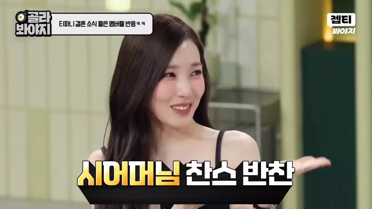 除了分享婚訊反應,Tiffany還首次公開與丈夫在家中共用的冰箱,裡頭塞滿乳酪、水果、蛋白飲品以及各種韓式小菜。這些豐盛食材大多是卞約漢的媽媽親手準備的,她害羞表示:「我有收到滿滿的寵愛。」並大讚奶奶手藝一流,每次都會準備一大桌美食。被問到是否會親自下廚,Tiffany笑稱:「這不是我的工作。」不過她也坦言,婚後對烹飪產生了更多興趣。