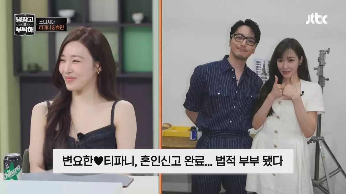 韓國傳奇女團少女時代成員Tiffany近日與隊友孝淵一同登上人氣綜藝節目《拜託了冰箱》,首度在電視節目中透露婚後甜蜜生活,並分享與演員卞約漢完成婚姻登記的點滴,以及團員們得知喜訊時的真實反應,掀起粉絲熱烈討論。