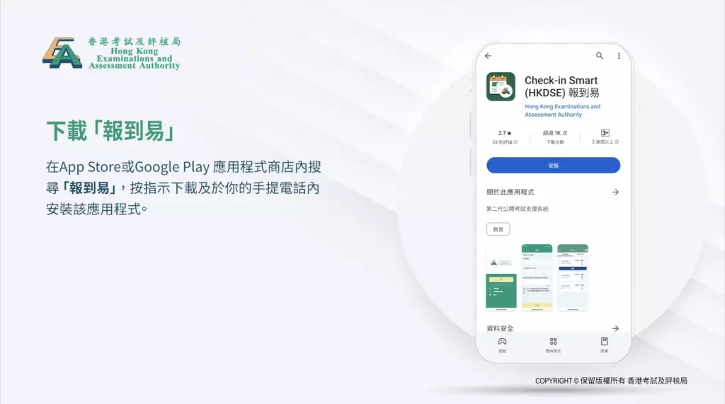 8成考生使用「報到易」應用程式自行簽到。考評局圖片