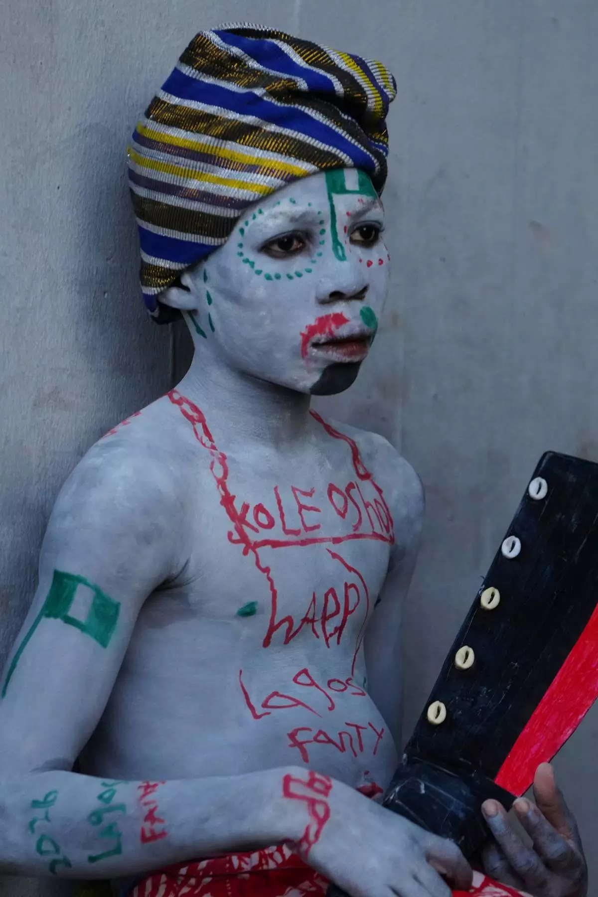 檔案圖片:2026年4月6日,尼日利亞拉各斯(Lagos),一名男孩參與方蒂嘉年華(Fanti Carnival),慶祝「阿古達」(Aguda)的非裔巴西傳統,他們是19世紀從巴西返回的昔日奴隸。(美聯社圖片/Sunday Alamba, File) AP圖片