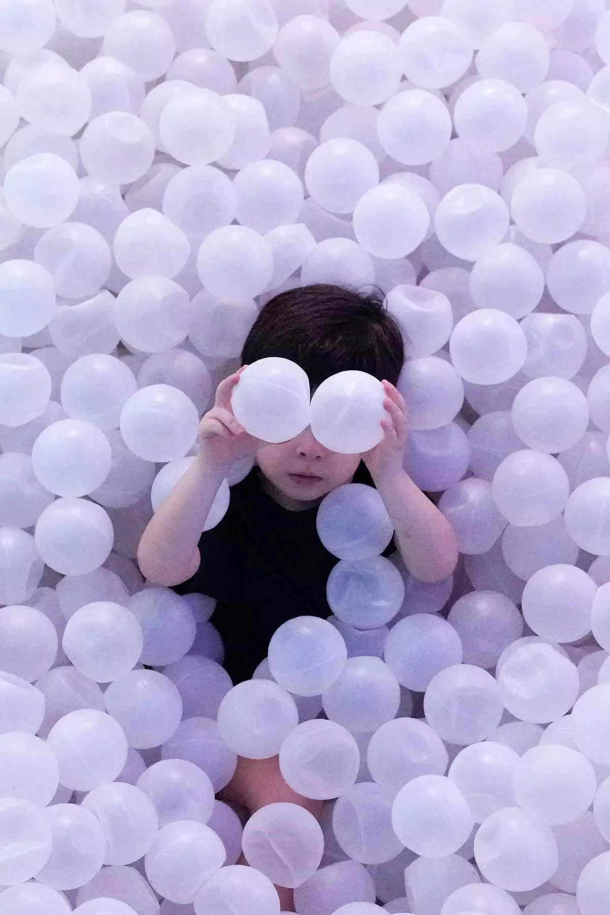 檔案圖片:2026年4月7日,巴拿馬城(Panama City),一名兒童在Megapolis Outlets Center的沉浸式展覽中,於波波池內玩耍。(美聯社圖片/Matias Delacroix, File) AP圖片