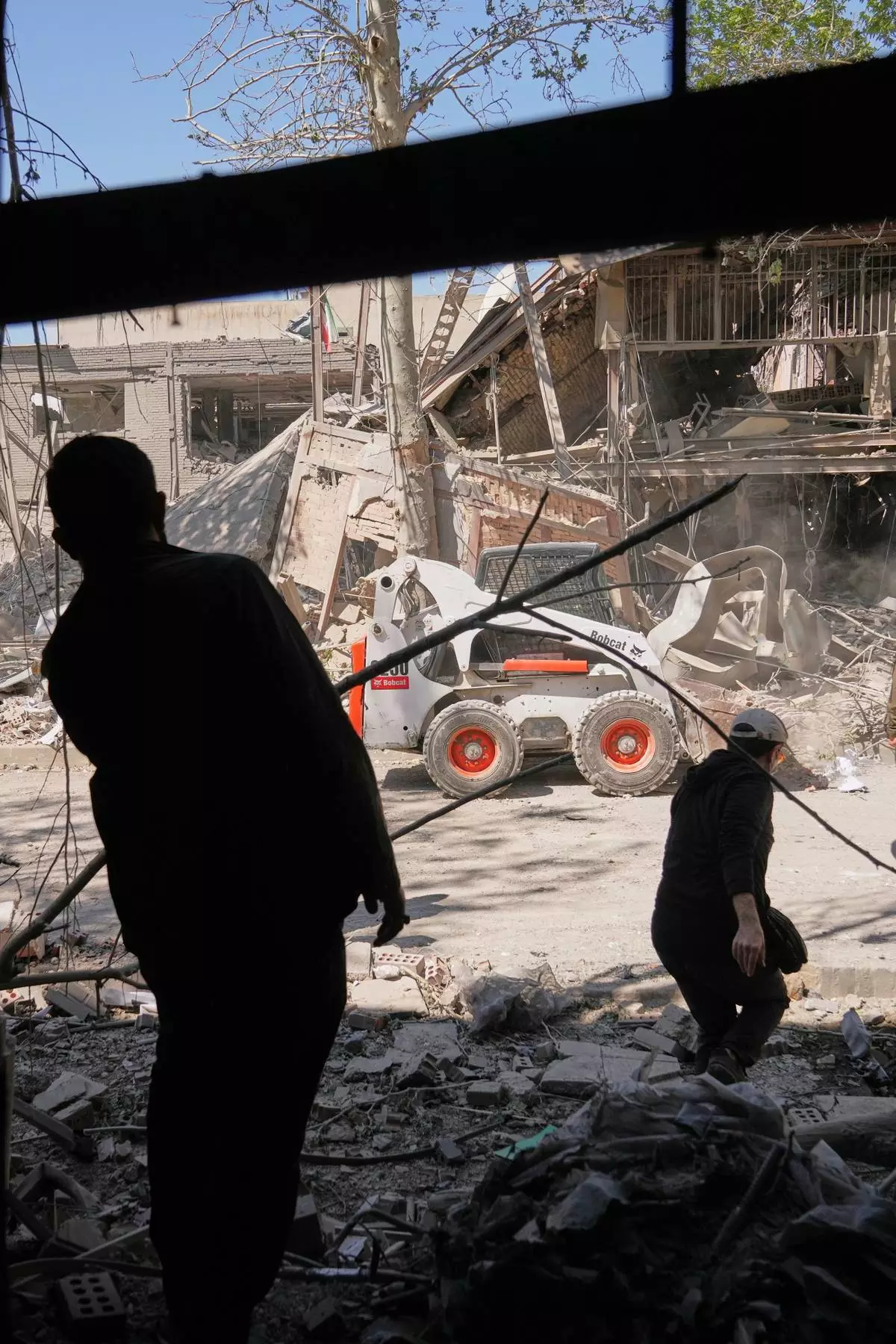 檔案圖片:2026年4月6日,伊朗德黑蘭,工人在德黑蘭沙里夫理工大學(Sharif University of Technology)綜合大樓清理瓦礫,伊朗當局指該處早前遭美國與以色列聯手襲擊。(美聯社圖片/Francisco Seco, File) AP圖片