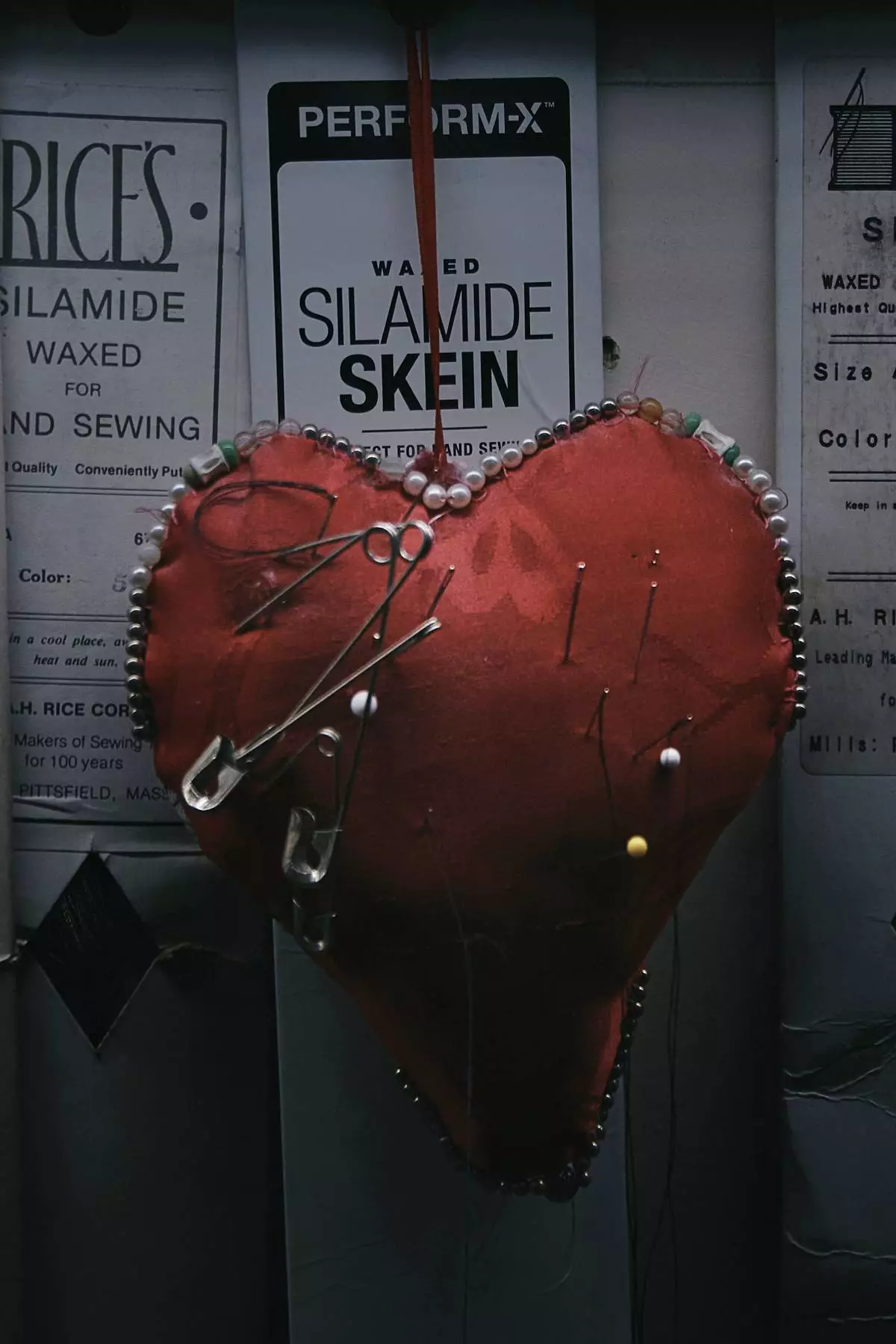 檔案圖片:2026年3月27日,紐約資深裁縫師Kil Bae的工作室牆上掛著一個心形針插。(美聯社圖片/Andres Kudacki, File) AP圖片