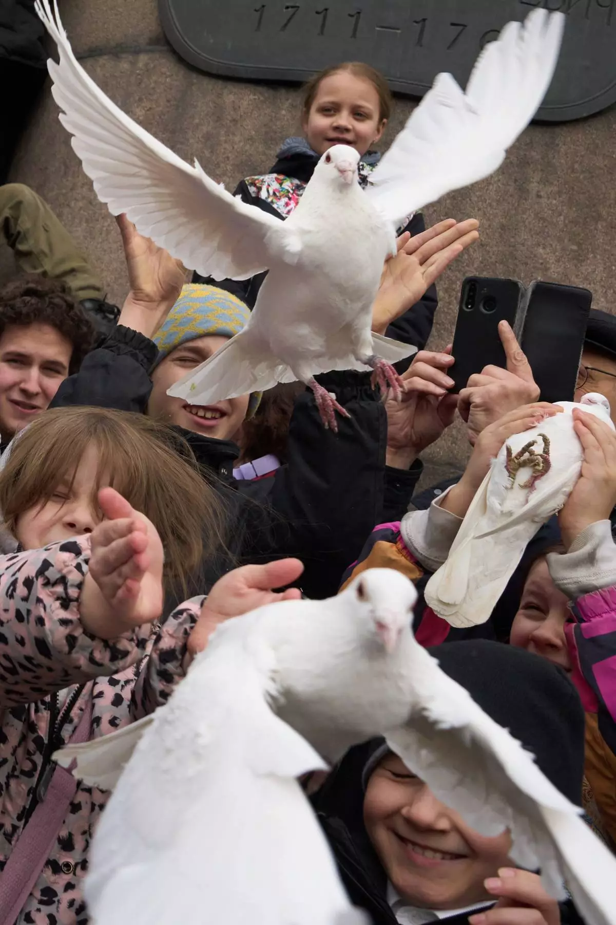 檔案圖片:2026年4月7日,莫斯科,兒童放飛雀鳥,慶祝聖母領報節(Annunciation),該節日為東正教復活節(Orthodox Easter)前夕。(美聯社圖片/Alexander Zemlianichenko, File) AP圖片