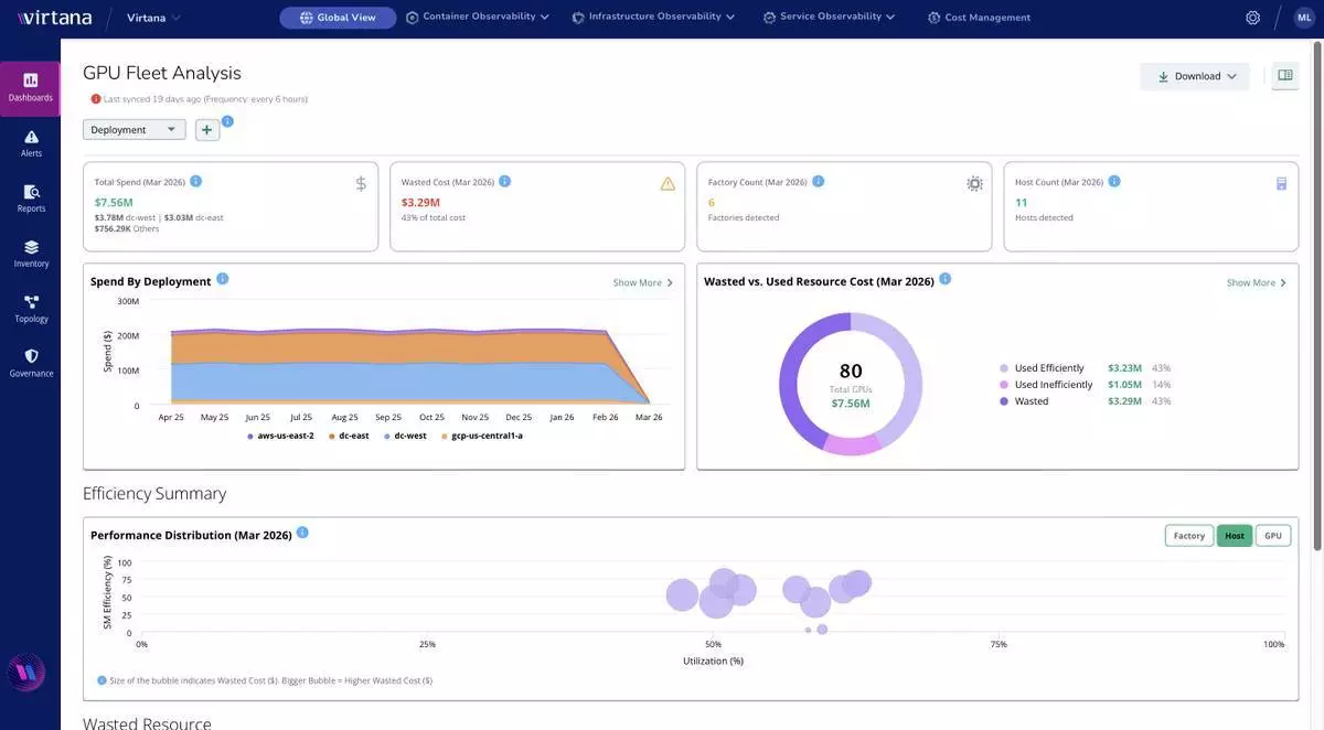 維塔納AI工廠可觀察性提供AI及紐坦力士環境中GPU機群支出、利用率、效率及浪費成本的統一視圖,協助基礎設施及平台團隊識別未充分利用的資源、減少浪費,並大規模改善營運控制。 AP圖片