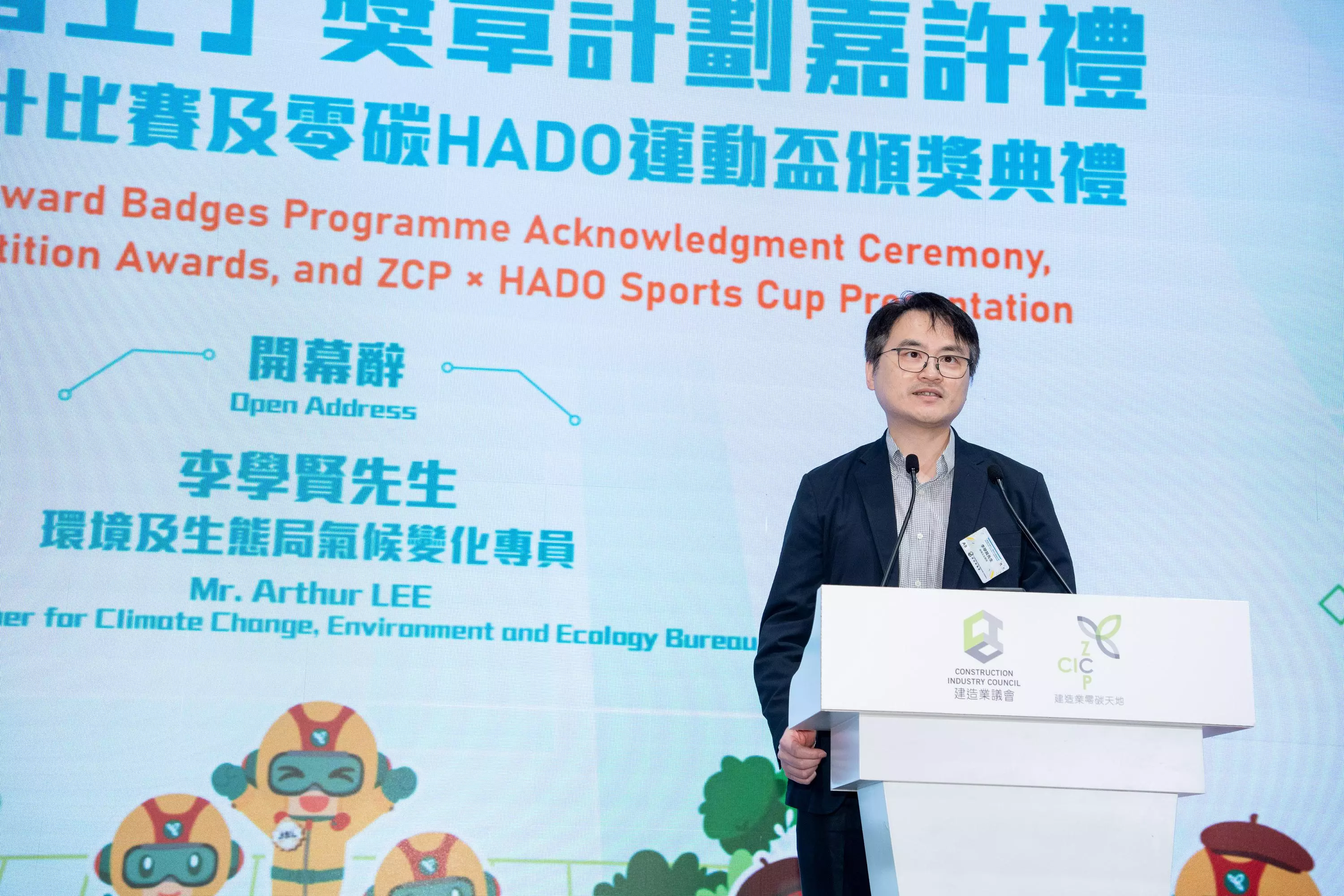 環境及生態局氣候變化專員李學賢先生致開幕辭時指出:「氣候變化已迫在眉睫。為了應對氣候變化挑戰,政府正積極落實四大減碳策略: 淨零發電、節能綠建、綠色運輸及全民減廢,力爭在2050年前實現碳中和。邁向碳中和,必須凝聚社會各界力量。感謝建造業零碳天地持續推動『零碳小勇士』獎章計劃,為香港培育環保生力軍。」