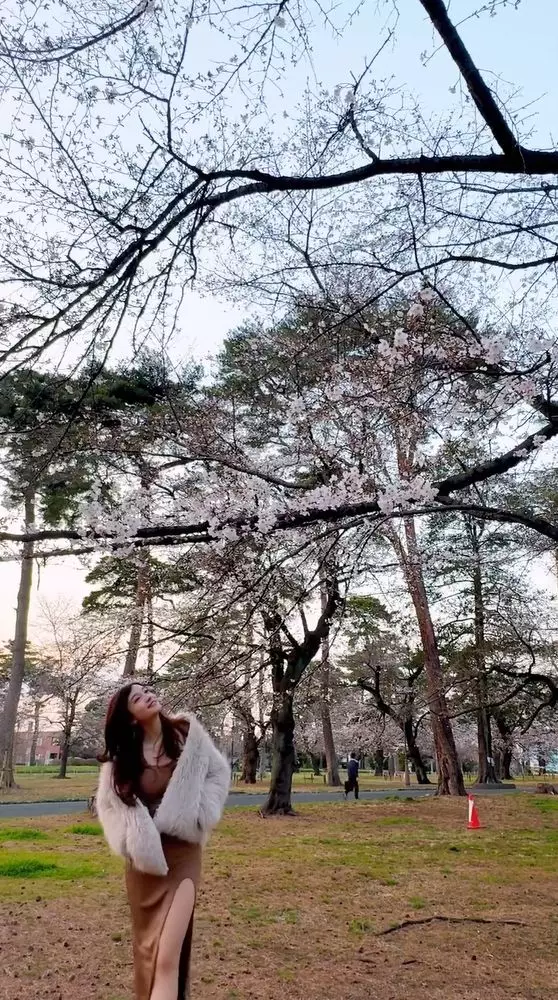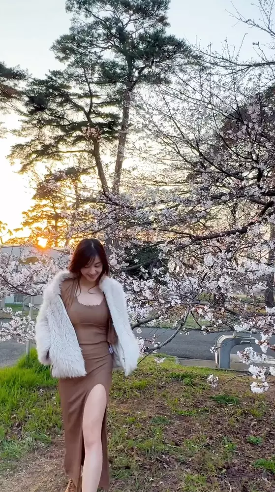 前TVB「新聞女神」陳嘉倩近日到東京賞櫻,在社交平台分享福利影片。她穿上啡色低胸緊身長裙,外搭白毛毛外套,於夕陽下漫步櫻花樹間,身材玲瓏有致,獲讚「人比花嬌」。不過有眼利網民留意到她腹部微隆,紛紛猜測是否造人成功。面對「似有咗喎」的留言,陳嘉倩親自幽默回應:「如果唔係咁點」,間接否認懷孕,盡顯高情商。她去年5月與日籍老公Tomo閃婚,婚後不時大晒甜蜜人妻生活。