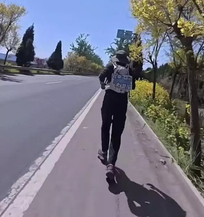 河北一名男子曾歷時34天跨越1300公里從北京跑至上海,如今再從天安門出發計劃跑向武漢,半個月已抵山東。