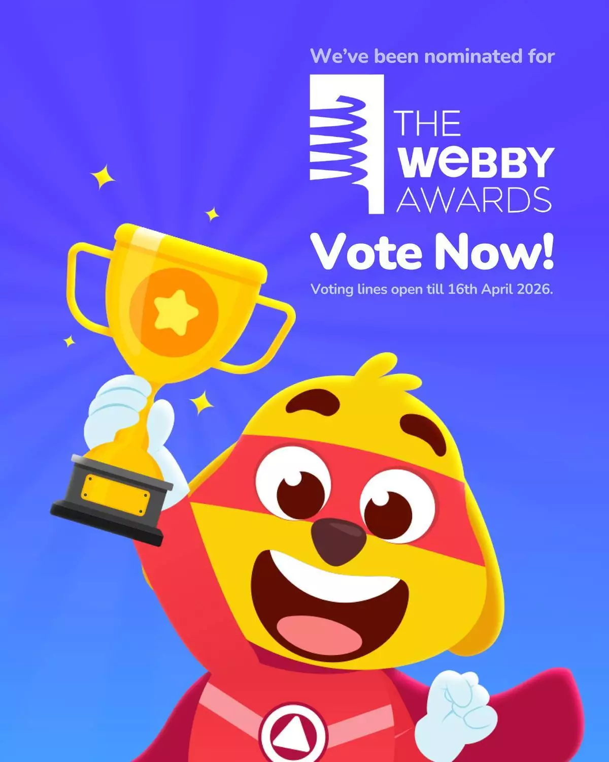 作為被提名者,Kiddopia亦有資格競逐「威比人民之聲獎」(Webby People’s Voice Award),該獎項由全球粉絲在網上投票選出。由即日起至4月16日,Kiddopia的粉絲可進行投票。
