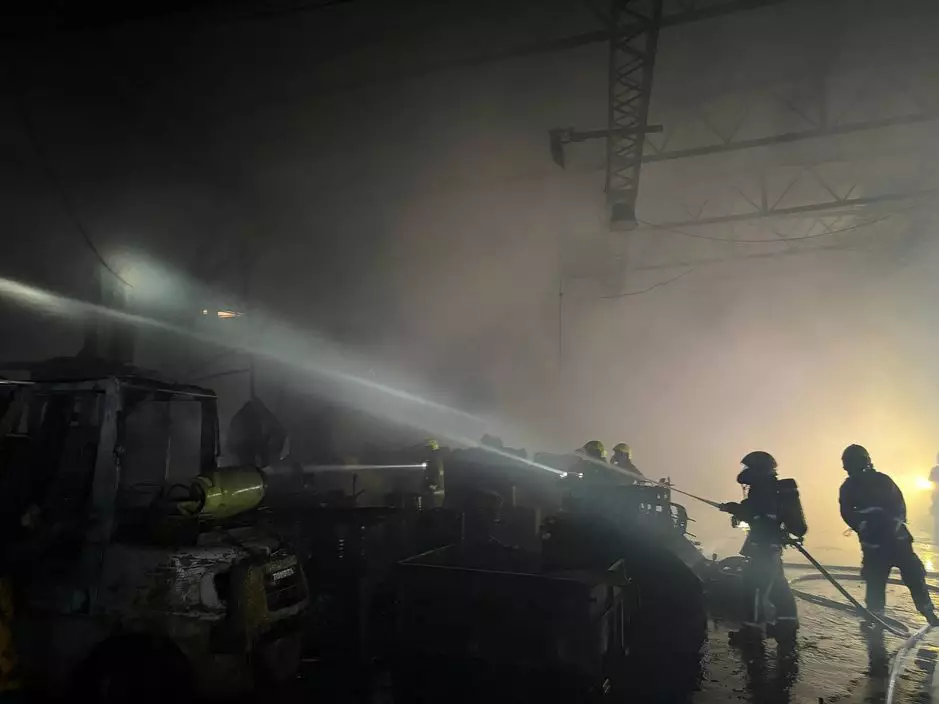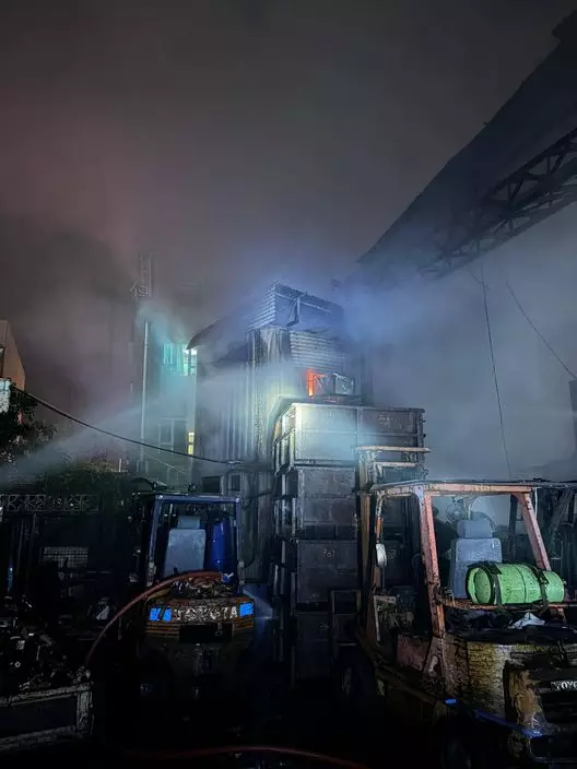 錦上路上村一間鐵皮構築物發生火警,消防到場撲救。消防處FB圖片