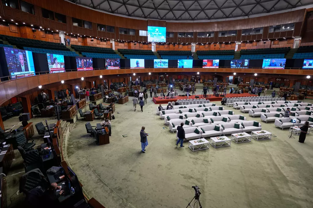 4月11日,美伊會談在巴基斯坦伊斯蘭堡舉行,圖為傳媒中心內各人在為採訪做準備。AP圖片