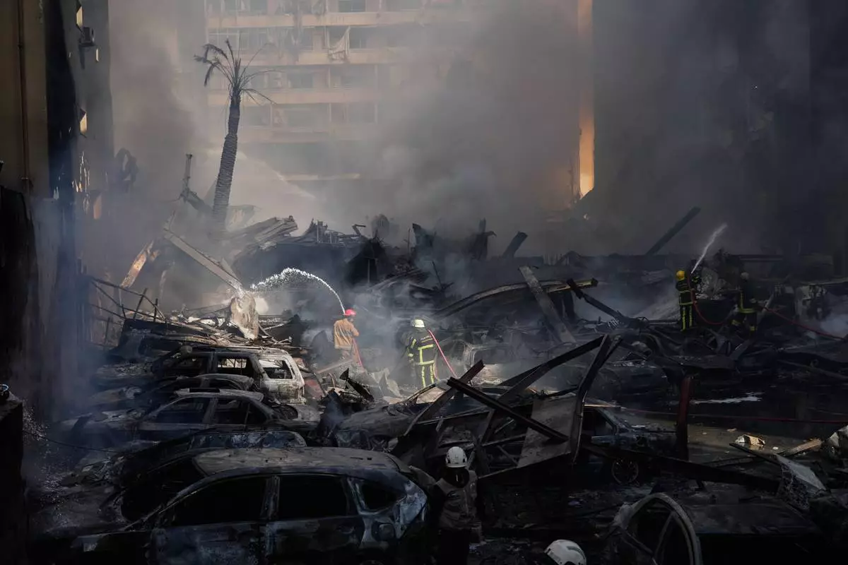 在受災地區,混亂程度更甚。人們的臉上沾滿了黑色的煙灰。在貝魯特最繁忙的十字路口之一,馬茲拉濱海大道(Corniche al-Mazraa),一名美聯社攝影師目睹燒焦的汽車堆疊在一起,其中一輛車內有一具被壓碎的屍體。