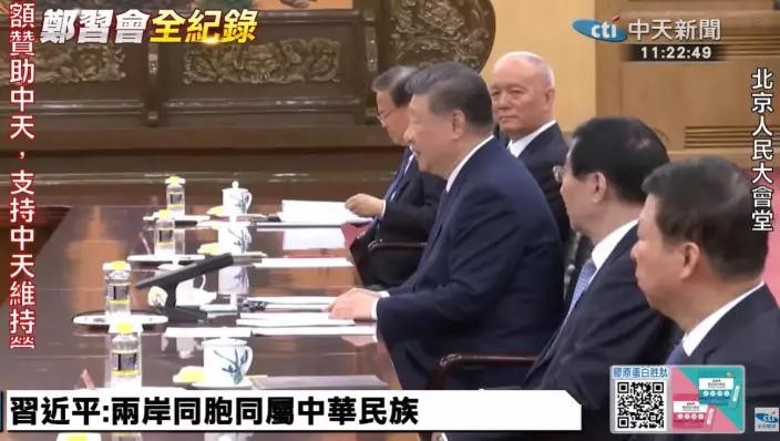習近平鄭麗文歷史性會面。中天新聞直播影片截圖