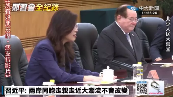習近平鄭麗文於北京會面。中天新聞直播影片截圖