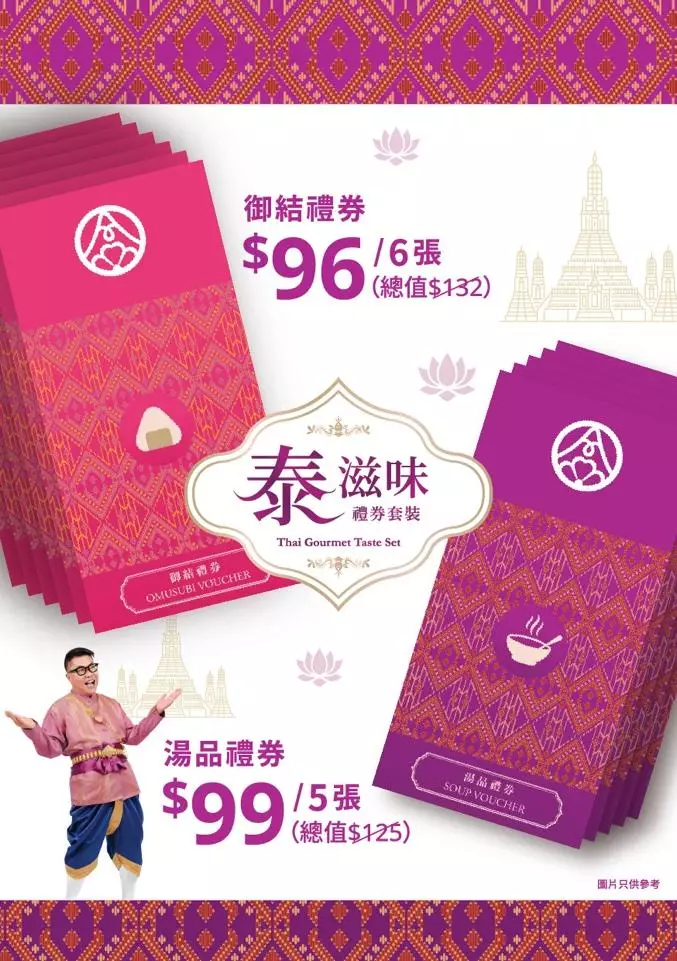 * 「泰滋味」御結禮券套裝:每套售價 $96(內含 6 張禮券,總值 $132),憑券可換領任何御結乙件。