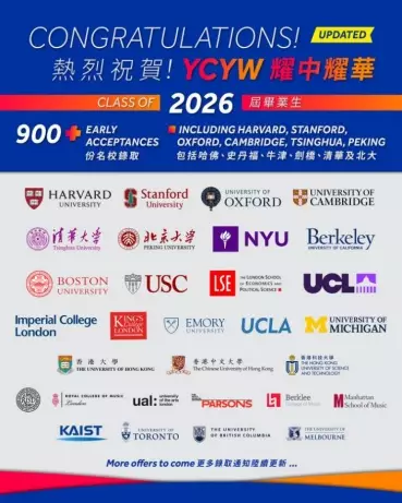 隨著全球高校 2026 年度錄取結果陸續公布,耀中耀華教育網絡公布最新升學成果。截至 2026 年 4 月,耀中耀華 2026 屆學生已累計收到超過 900 份來自世界知名高校的錄取通知書,涵蓋美國、英國、中國內地、中國香港及亞洲、歐洲多個國家和地區,包括哈佛大學、史丹福大學、牛津大學、劍橋大學、倫敦帝國學院、清華大學、北京大學、香港大學、韓國科學技術院(KAIST)以及帕森斯設計學院等全球頂尖學府。