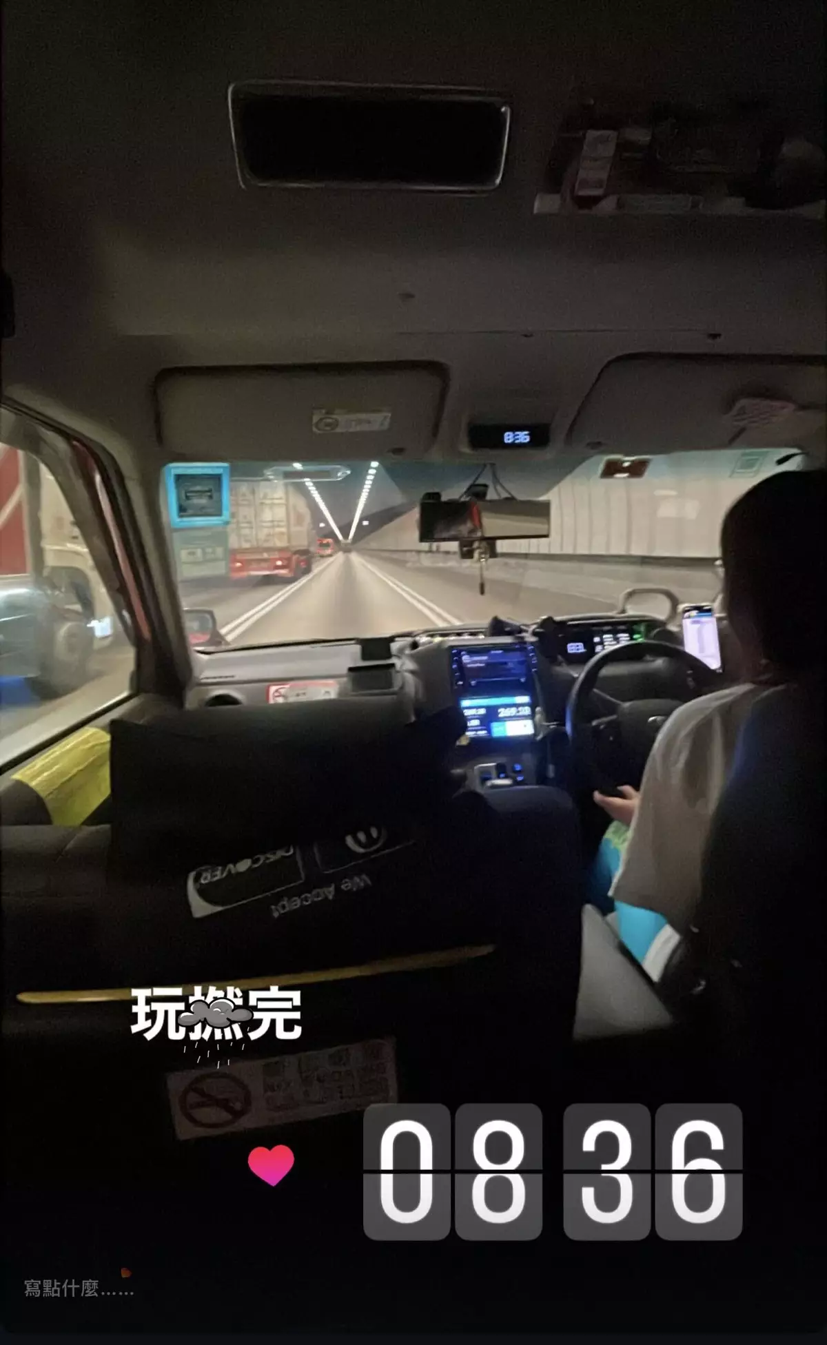 當車輛駛入隧道時,時間已是早上8:36,她無奈地寫下「玩X完」。網上截圖