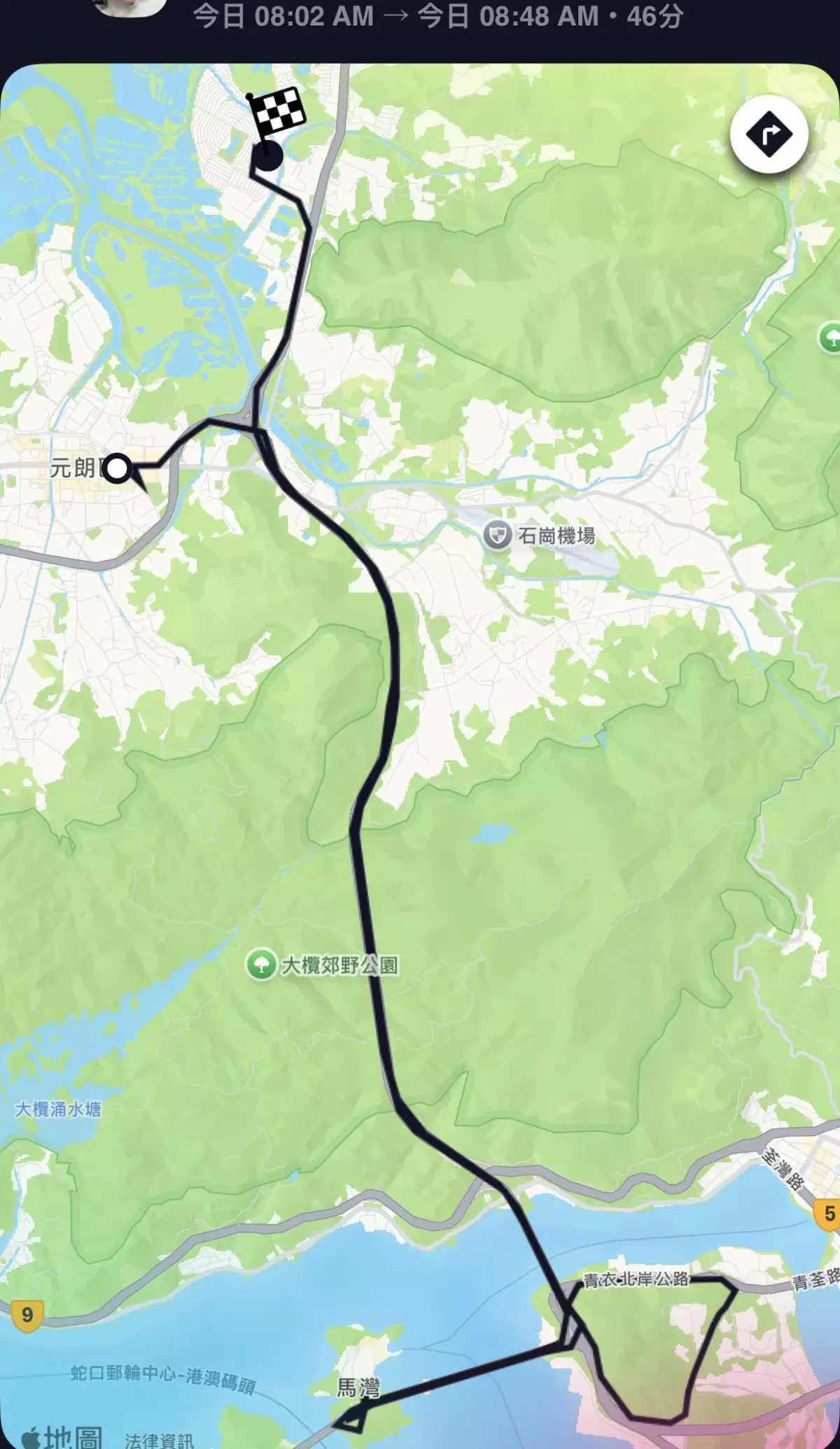 從截圖可見,車輛從元朗出發後,一路向南經大欖隧道、汀九橋、青衣,甚至繞進馬灣,整個行程從早上8:02持續到8:48,足足46分鐘,完全偏離目的地錦繡花園。考生沿途拍下車內情況,心情從焦急到絕望,在駛經汀九橋時更在相片打上「去X咗汀九橋咩玩法」。當車輛駛入隧道時,時間已是早上8:36,她無奈地寫下「玩X完」。