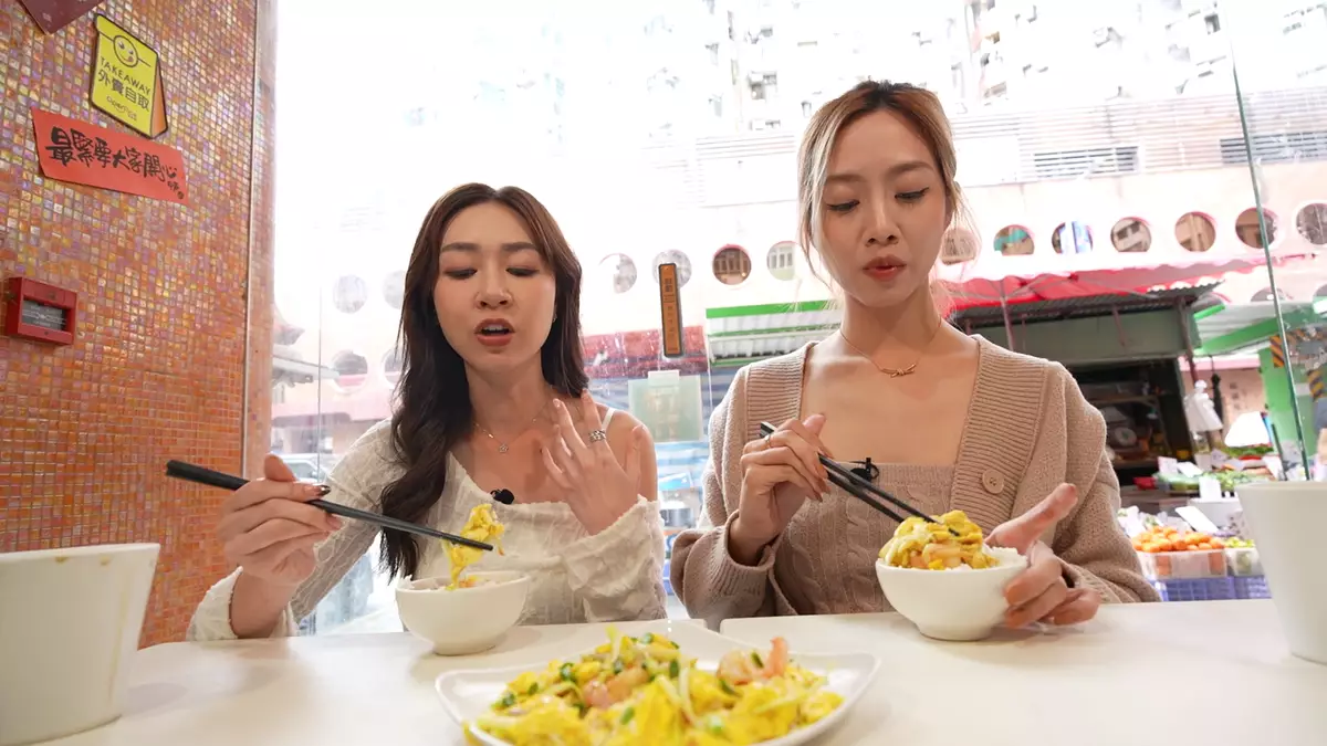 昨晚(4月9日)胡美貽(Nicole)與黃嘉雯(Carmaney)行孖咇來到港島大坑覓食。Nicole首先推介一間英皇藝人謝霆鋒、容祖兒及經理人霍汶希等都不時幫襯的冰室,當中必食的「鹹蛋蒸肉餅」(火山蒸肉餅),她解釋說︰「呢個肉餅飯係大坑三寶之一,係好家常嘅菜色,個味道係似祖母嘅手勢。」Carmaney大讚這道菜可以用「啖啖肉」來形容,而且看得出是人手打成。另一款鎮店菜是客家鹽焗手撕雞,用雞𩨨肉撕製而成。另外Carmaney對另一味蝦仁炒蛋讚不絕口,單是這道菜已足夠下一碗飯。Nicole接住帶Carmaney來到一處鐵皮屋茶檔,這類茶檔在香港已買少見少,單是風味已爆燈。這檔茶檔備受小紅書推介,Nicole說︰「呢檔鐵皮屋50年代開到而家,佢賣嘅絲襪奶茶被CNN評為香港4大奶茶之一。陳奕迅仲話無飲過呢間茶檔,等如無嚟過大坑。」
