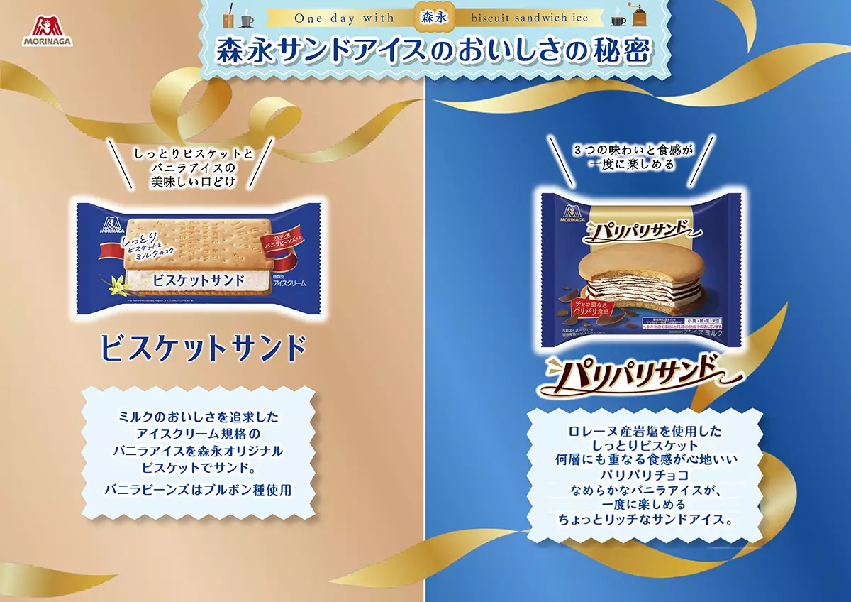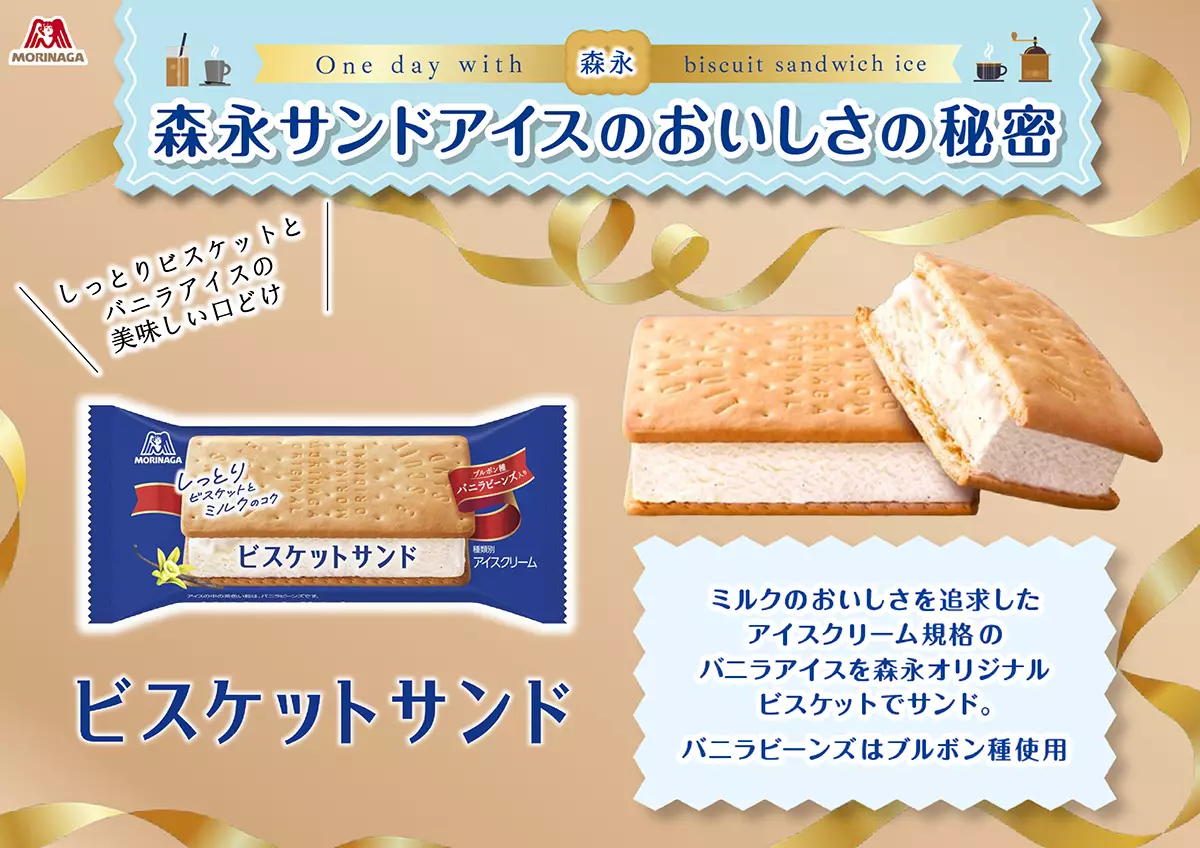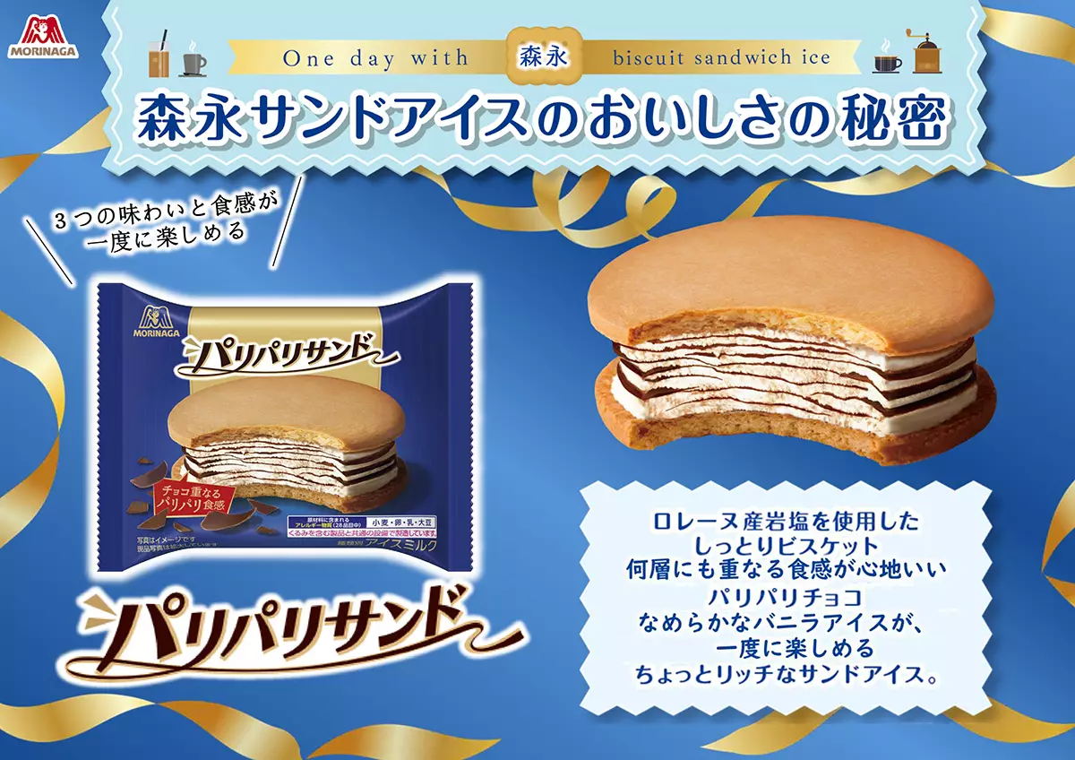 在日本便利店長期熱賣的三文治雪糕,一直是最具代表性的日系雪糕甜點之一。森永製菓的三文治雪糕系列更是便利店的「斷貨王」。柔軟餅乾包裹著香滑雪糕,口感輕盈細膩且層次分明,完美演繹餅乾與雪糕之間的黃金比例。