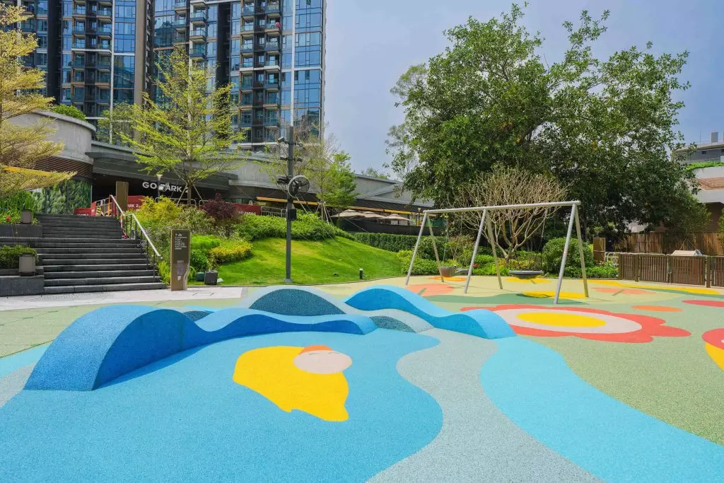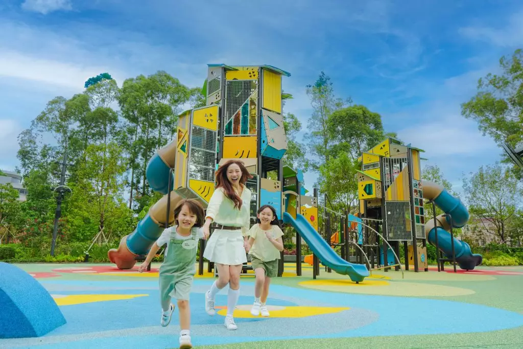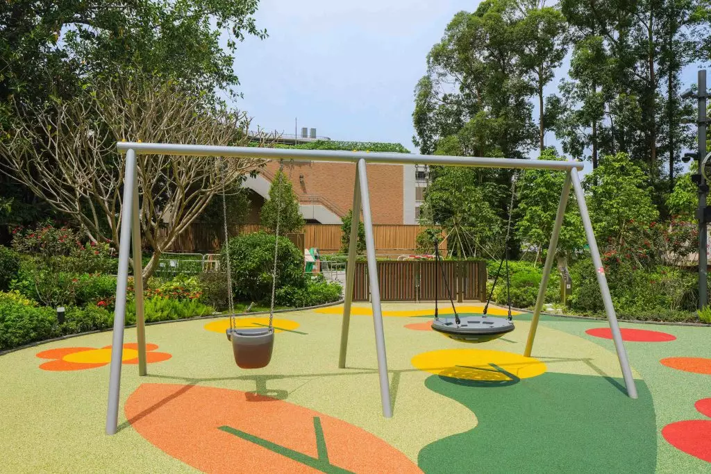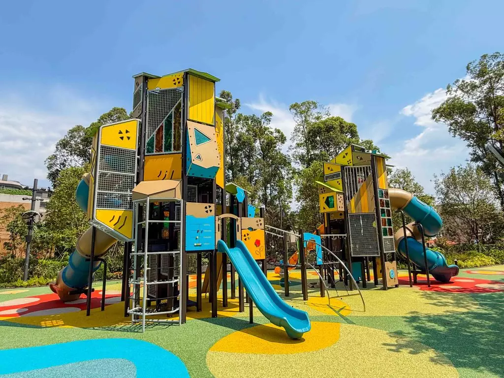 以森林樹屋雙子塔滑梯為主軸的「樹屋小天地」設計,兩座互相呼應的樹屋分別高達近7米及6米,連接旋轉滑梯與開放式滑梯,孩子從3.6米高的滑梯一滑而下,彷彿穿越奇幻森林,展開歷奇探索之旅。場內其他遊玩設施還包括叢林鞦韆、蘑菇攀爬架及波浪平台,挑戰孩子的平衡能力與膽量,同時訓練手眼協調,增進多感官與體能訓練。整個公園色彩與圖案採用鮮明色系與地面圖案(蘑菇、湖泊、花叢),打造一個啟發想像力、鍛鍊體能及增強社交,讓孩子在玩樂中全面成長,盡情探索的奇趣空間。