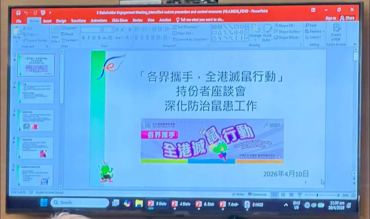 在會議上,建築業界和領展的代表亦匯報在「各界滅鼠行動」下各項工作的進展,包括定期監測轄下場所的鼠患和蚊患情況、遵行防治蟲鼠指引和管理守則、持續保持其處所免受鼠患和蚊患侵擾、更廣泛地應用新技術和工具,以及為前線員工提供培訓講座和參與防治蟲鼠宣傳活動。