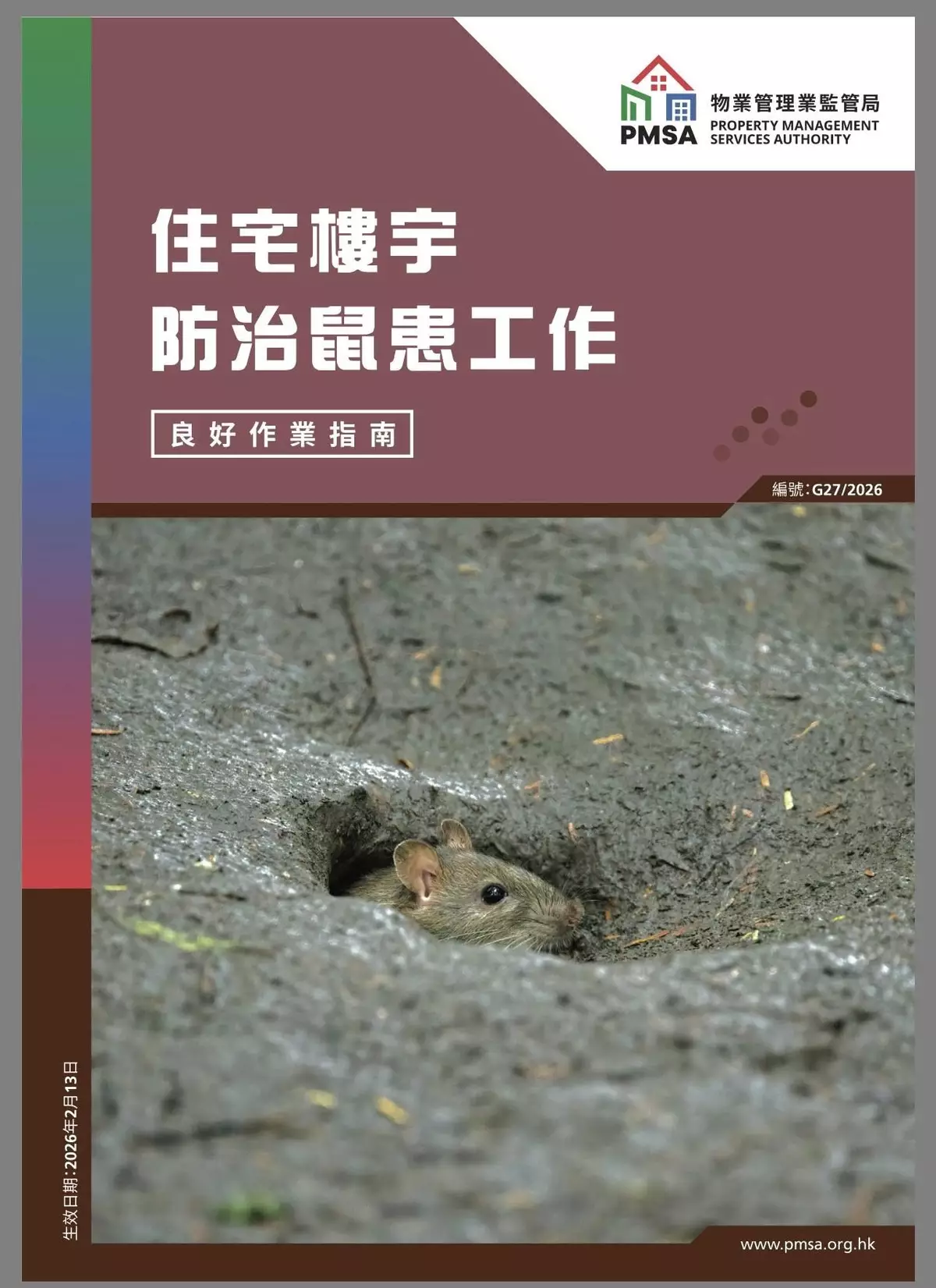食環署亦與物業管理業監管局合作編製《住宅樓宇防治鼠患工作》及《住宅樓宇蚊患預防及控制工作》良好作業指南,並分別於今年2月及3月發布,為物管公司和物管人員執行鼠患和蚊患預防及控制工作提供有用的資訊。