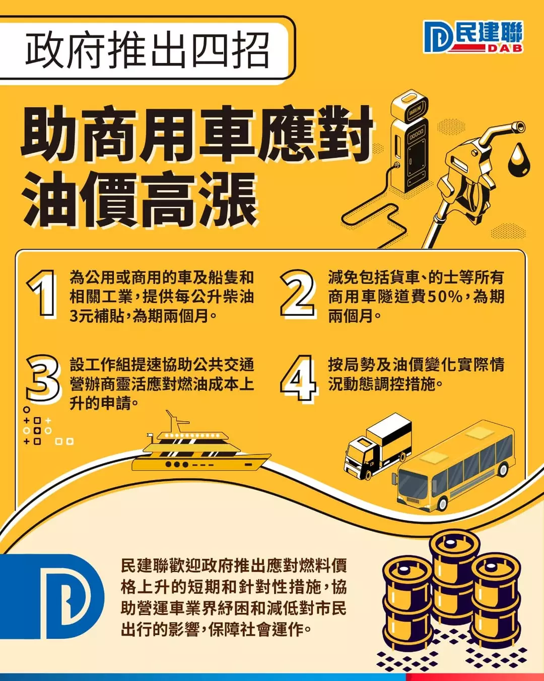 立法會財務委員星期五(4月10日)表決通過18億元緊急撥款,以穩定香港油價。民建聯立法會議員代表會後見記者,表示支持政府推出補貼,並建議當局可設立內地供港油品出口機制,以保證油品供應,穩定油價。